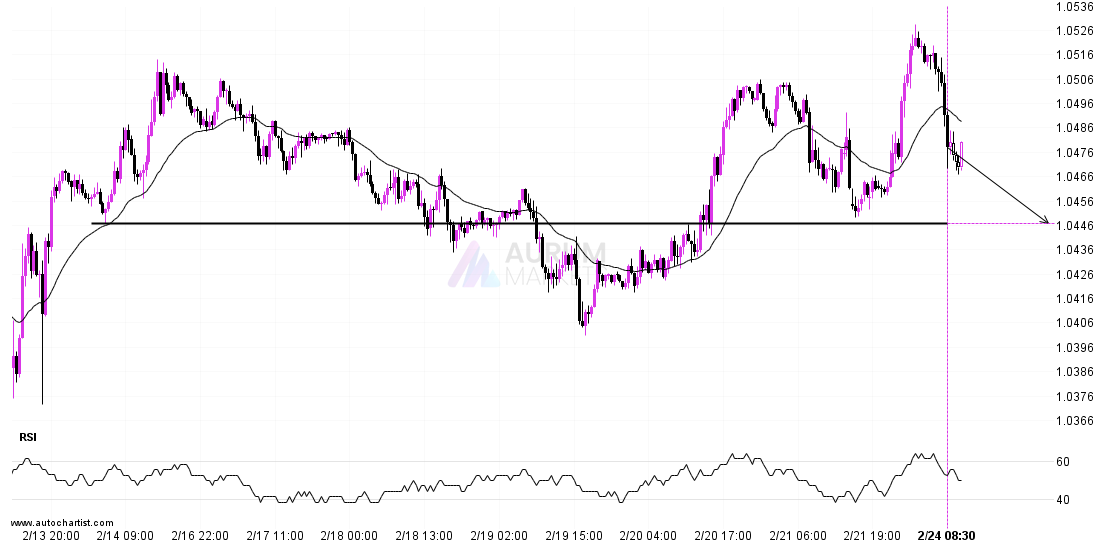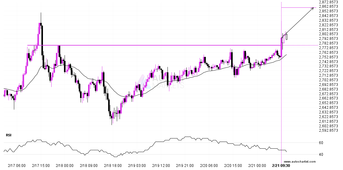 ETHUSD has broken through a support line. It has touched this line numerous times in the last 12 days. This breakout shows a potential move to 2443.7561 within the next