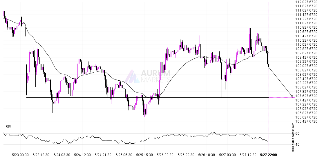 BTCUSD is moving towards a line of 107543.8281 which it has tested numerous times in the past. We have seen it retrace from this position in the past, so at