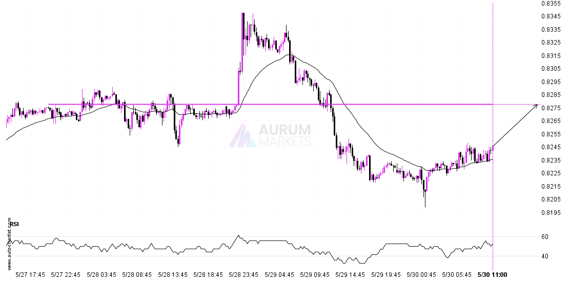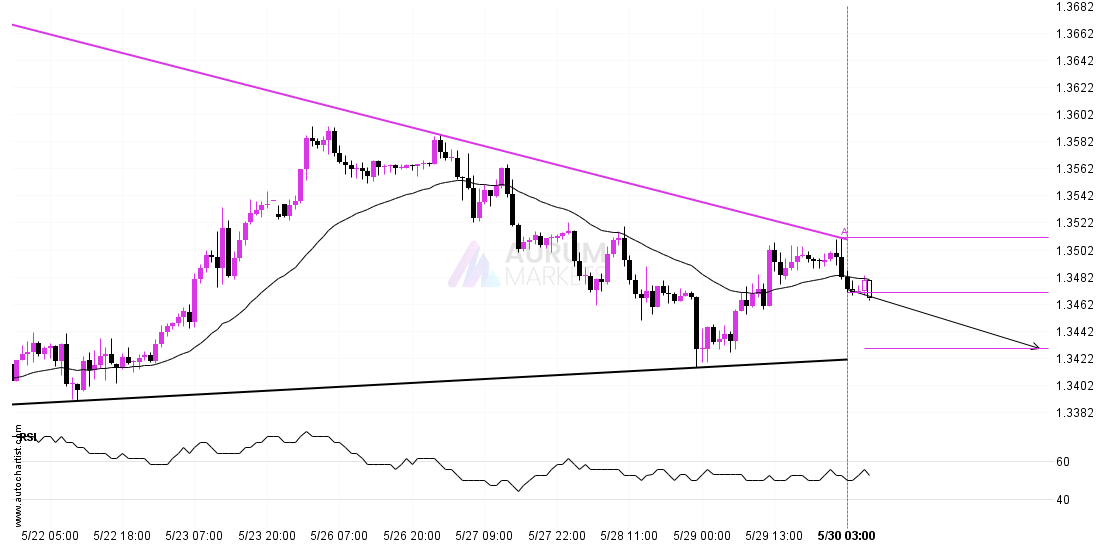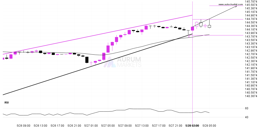 Emerging Triangle detected on GBPUSD – the pattern is an emerging one and has not yet broken through resistance, but the price is expected to move up over the next