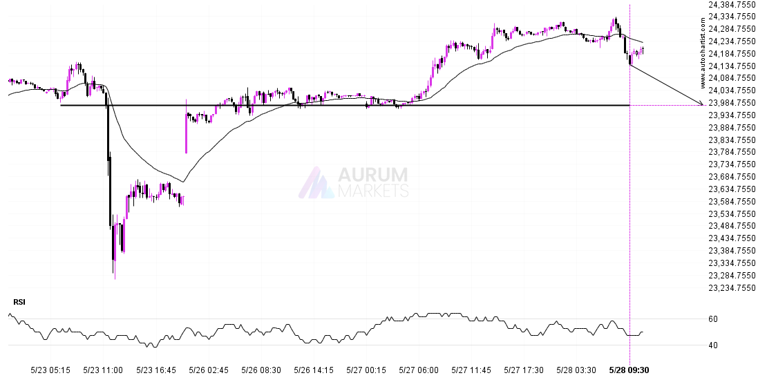 DAX 40 is about to retest a key horizontal support level near 23973.0000. It has tested this level 7 times in the recent past and could simply bounce off like