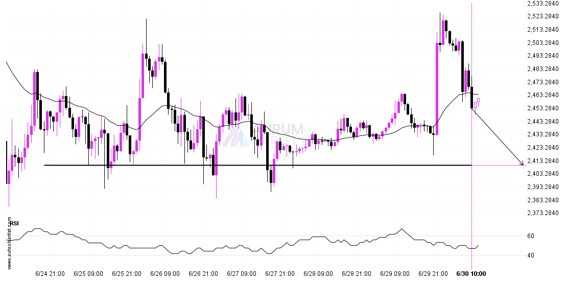 ETHUSD is moving towards a key support level at 2409.5100. This is a previously tested level for ETHUSD. This could be a good trading opportunity, either at the spot price,