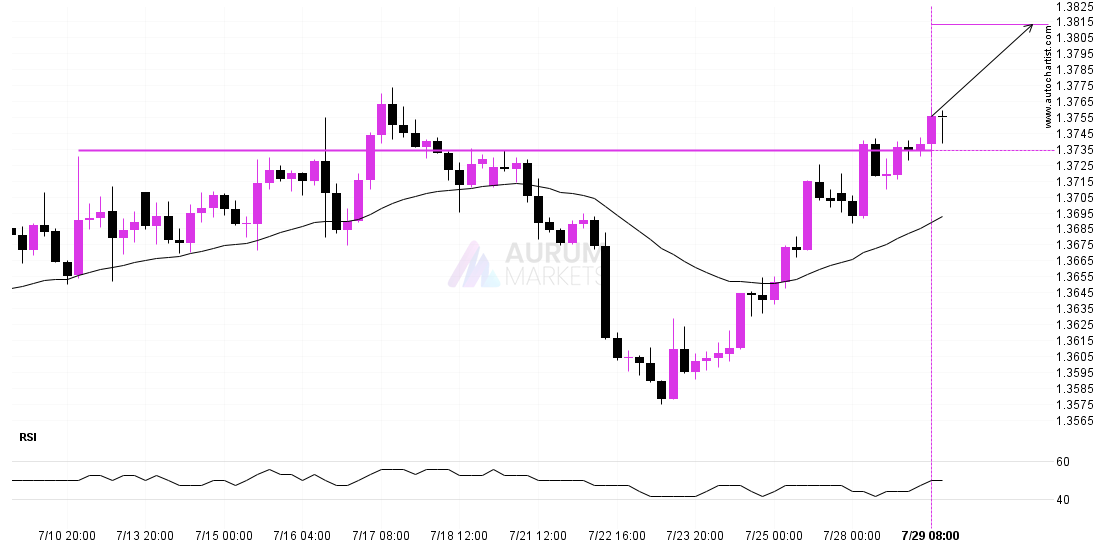 USDCAD is once again retesting a key horizontal resistance level at 1.3735. It has tested this level 4 times in the recent past and could simply bounce off like it