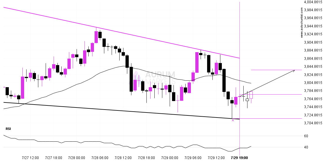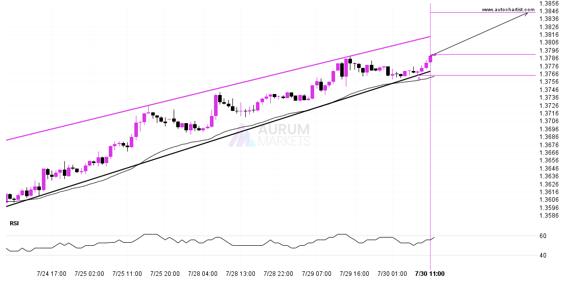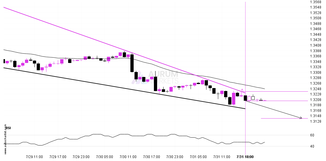 Emerging Falling Wedge detected on GBPUSD – the pattern is an emerging one and has not yet broken through resistance, but the price is expected to move up over the