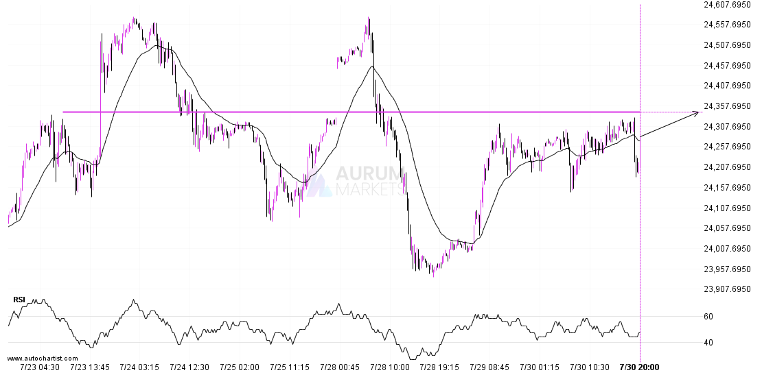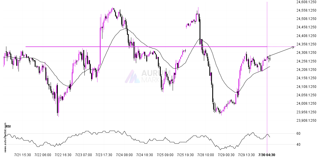 DAX 40 is heading towards 24342.9004 and could reach this point within the next 2 days. It has tested this line numerous times in the past, and this time could