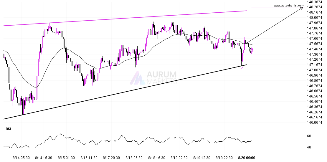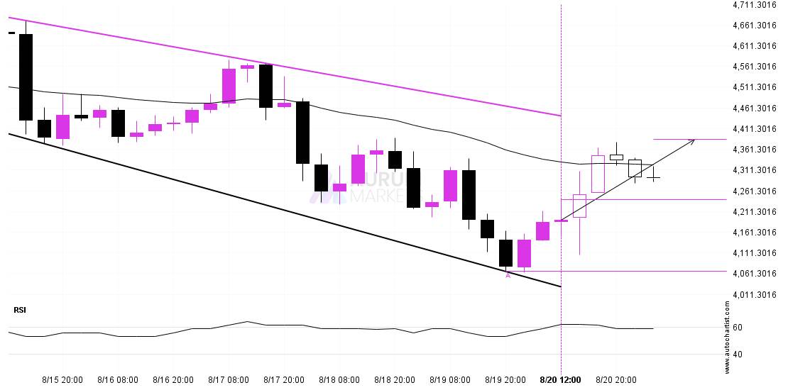 Approaching Support level of 8,877.0000 identified at 8/29 21:00. This pattern is still in the process of forming. Possible bearish price movement towards the support 8,877.0000 within the next 1