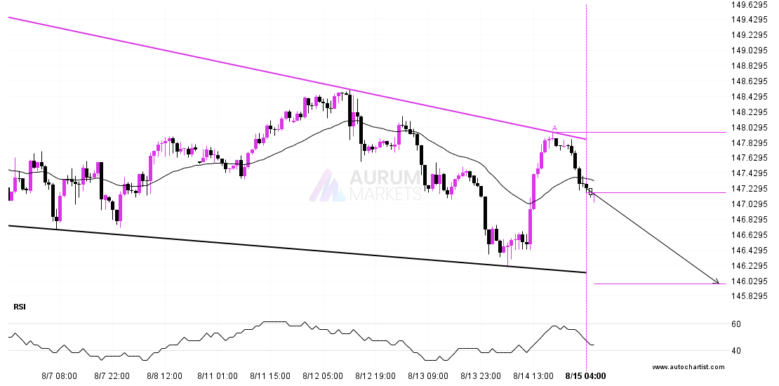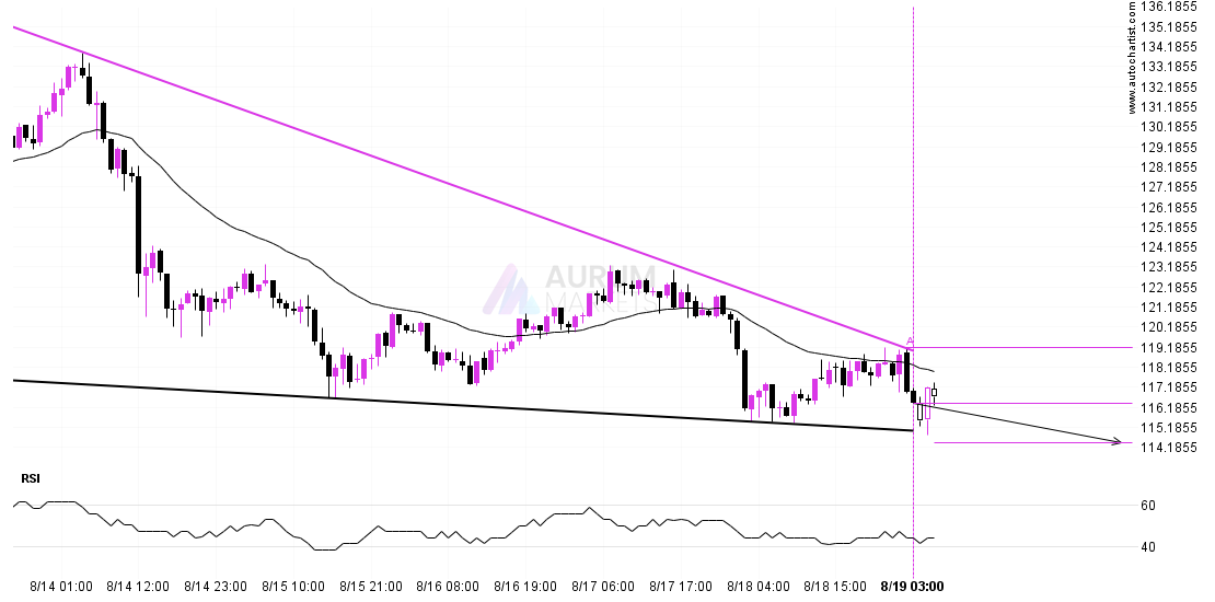 Emerging Falling Wedge pattern in its final wave was identified on the USDJPY 1 hour chart. After a strong bearish run, we find USDJPY heading towards the upper triangle line