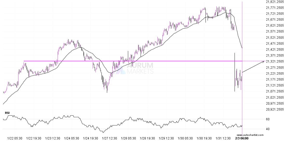 DAX 40 is about to retest a key horizontal resistance level near 21324.8008. It has tested this level 4 times in the recent past and could simply bounce off like