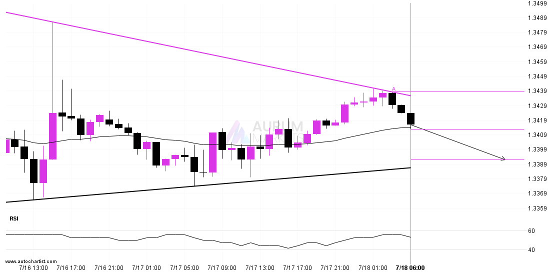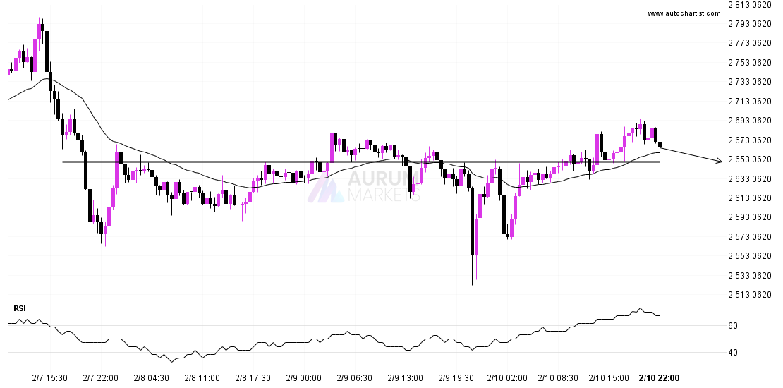 AUDUSD is heading towards a line of 0.6010. If this movement continues, the price of AUDUSD could test 0.6010 within the next 5 hours. But don’t be so quick to trade, it has tested this line numerous times in the past, so this movement could be short-lived and end up rebounding.