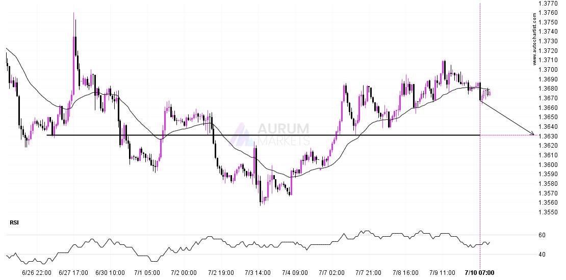 AUDUSD is moving towards a support line which it has tested numerous times in the past. We have seen it retrace from this line before, so at this stage it isn’t clear whether it will breach this line or rebound as it did before. If AUDUSD continues in its current trajectory, we could see it reach 0.6247 within the next 3 days.