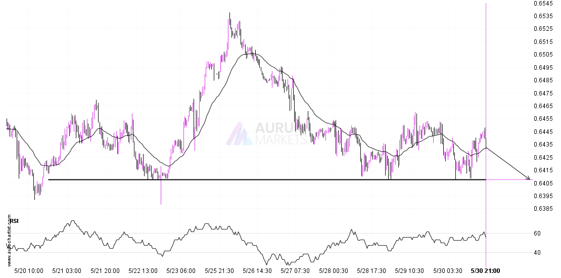 Broke through Support level of 1.7777 at 9/30 05:00. Possible bearish price movement forecast for the next 1 day towards 1.7709.