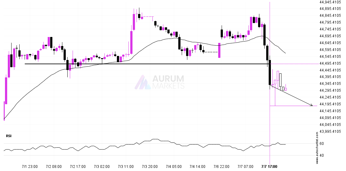 BTCUSD has broken through a support line. It has touched this line numerous times in the last 9 days. This breakout shows a potential move to 79226.7969 within the next 2 days. Because we have seen it retrace from this level in the past, one should wait for confirmation of the breakout.