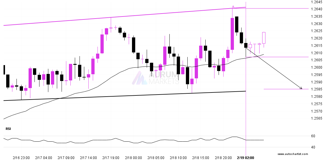 DOW 30 has broken through a resistance line. Because we have seen it retrace from this price in the past, one should wait for confirmation of the breakout before trading. It has touched this line numerous times in the last 2 days and suggests a possible target level to be around 43170.9141 within the next 10 hours.