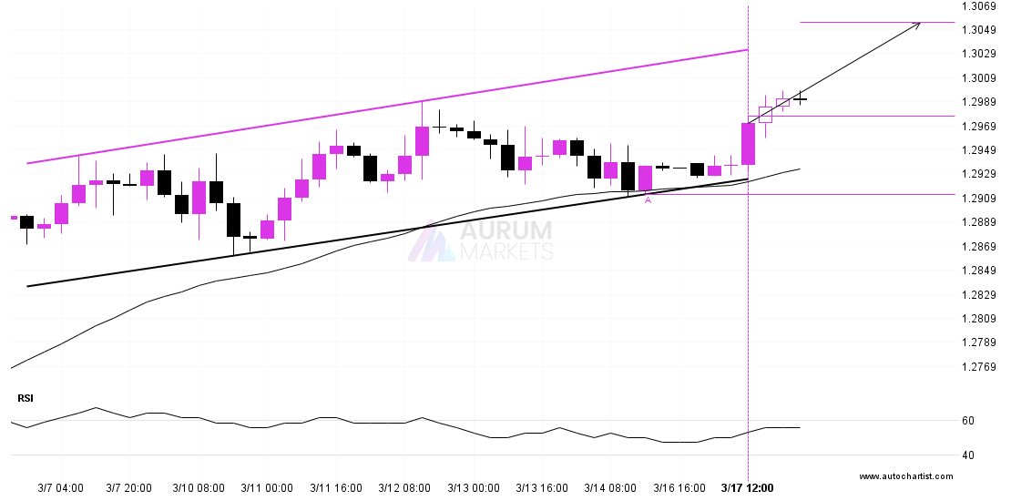 FTSE 100 is heading towards 8693.8496 and could reach this point within the next 7 hours. It has tested this line numerous times in the past, and this time could be no different, ending in a rebound instead of a breakout. If the breakout doesn’t happen, we could see a retracement back down to current levels.