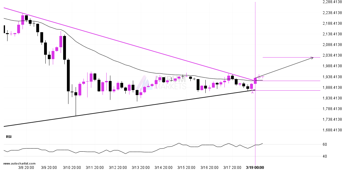 LTCUSD has broken through a resistance line. Because we have seen it retrace from this price in the past, one should wait for confirmation of the breakout before trading. It has touched this line numerous times in the last 11 days and suggests a possible target level to be around 97.8210 within the next 3 days.