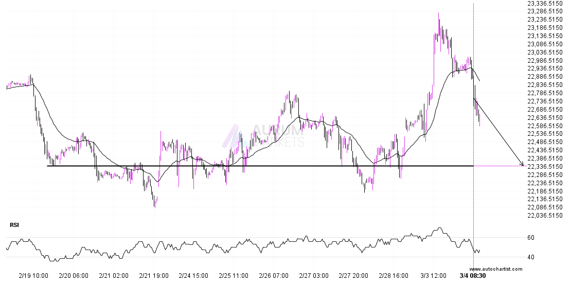 USDJPY has broken through a resistance line. It has touched this line numerous times in the last 7 days. This breakout shows a potential move to 150.7258 within the next 2 days. Because we have seen it retrace from this level in the past, one should wait for confirmation of the breakout.