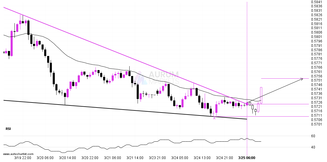 USDCHF has broken through a line of 0.8966 and suggests a possible movement to 0.8996 within the next 18 hours. It has tested this line numerous times in the past, so one should wait for a confirmation of this breakout before taking any action. If the breakout doesn’t confirm, we could see a retracement back to lines seen in the last 4 days.