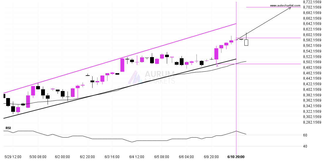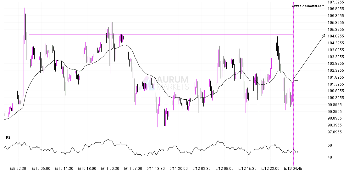 USDCHF is moving towards a resistance line. Because we have seen it retrace from this level in the past, we could see either a break through this line, or a rebound back to current levels. It has touched this line numerous times in the last 3 days and may test it again within the next 15 hours.