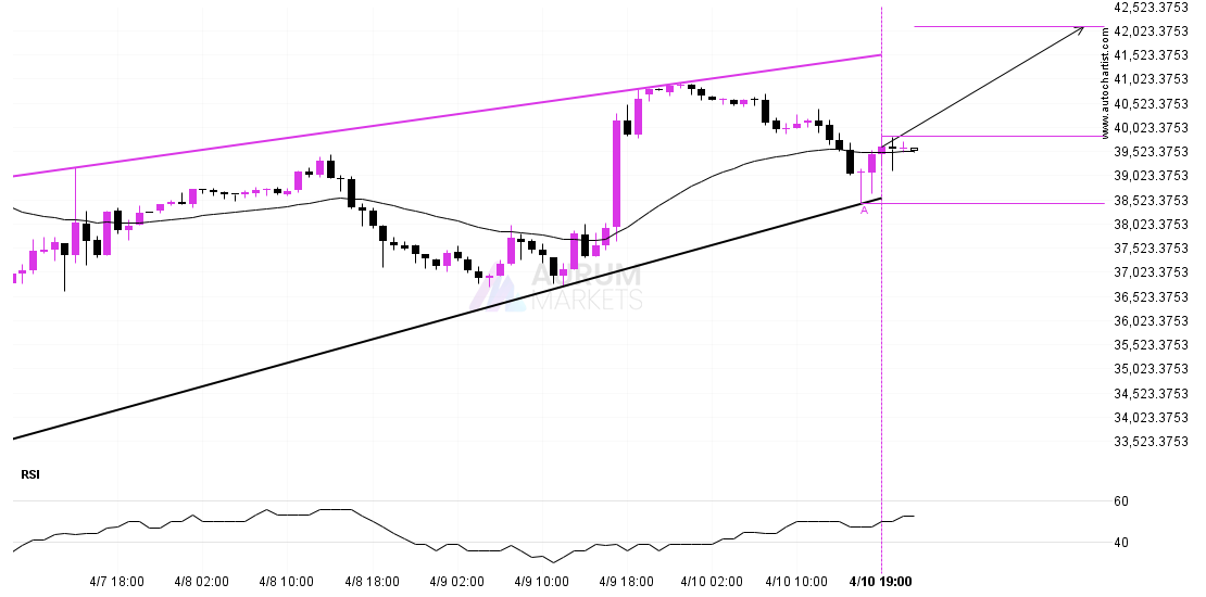 ETHUSD is trapped in a Flag formation, implying that a breakout is Imminent. This is a great trade-setup for both trend and swing traders. It is now approaching a support line that has been tested in the past. Divergence opportunists may be very optimistic about a possible breakout and this may be the start of a new trend. It may also be that this convergence factor may result in the ideal setup for swing traders that are on the lookout for a possible bounce-back. Whatever happens, an initial move towards 4384.6887 is expected in the short term.